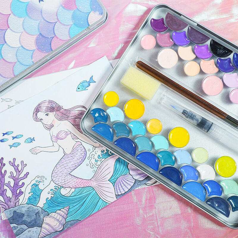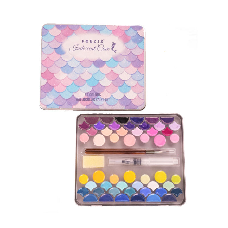52 Colors Portable Solid Watercolor Paint Set | OEM Custom Factory | Mermaid Scale Texture Tin Box | Wholesale